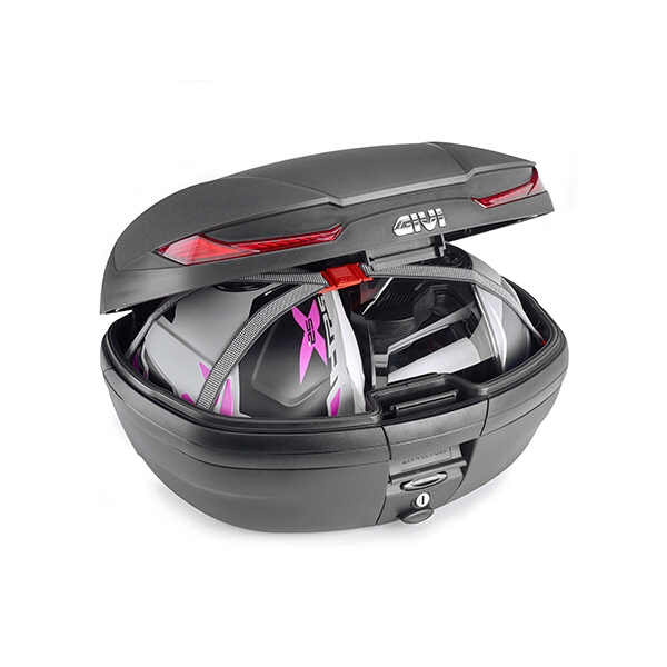 The V45 Arena is the new model of motorcycle top-case from GIVI. The MONOKEY® attachment makes it easy to install and remove from your motorcycle, as well as making it compatible with most motorcycles and scooters on the market. The impressive 45-LTR volume and 10 kg load capacity guarantee enough space to hold two full-face helmets.