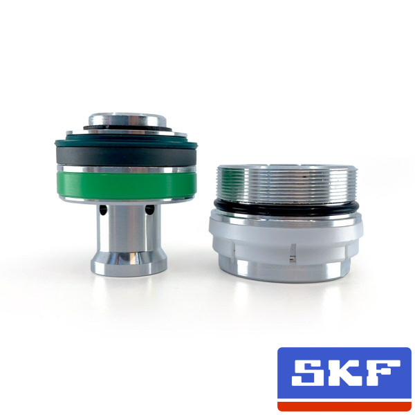 The PISTON ASSEMBLY is ready to be mounted with the special SKF low friction Seal coupled with its NEW GREEN glide band made of special SKF tecno- polymer (Ecowear 1000 UHMWPE (Ultra High Molecular Weight Polyethylene). A complete Cartridge Head Cap is also provided pre-assembled with all SKF components and ready for installation.