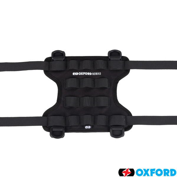 The Oxford NOMAD Accessory Harness is a MOLLE-compatible, universal saddle mounted base for attaching luggage accessories.