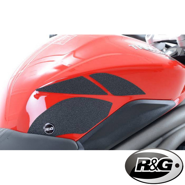 R&G Tank Traction Grips are available for hundreds of different bike and brands, with new applications released regularly. The unique R&G Tank Traction Grip texture was specifically designed to be high grip, soft and durable, providing the rider with the grip and feel he/she needs to assist in better bike control. Allowing the rider to maintain a stable body position while cornering and braking, whilst also relieving fatigue and providing the rider with complete confidence allowing him/her to fully focus on the road (or track) ahead instead of slipping and sliding on the tank, working in both wet and dry conditions, R&G Tank Traction Grips are equally at home on the track as they are on the commute! Made in the UK!